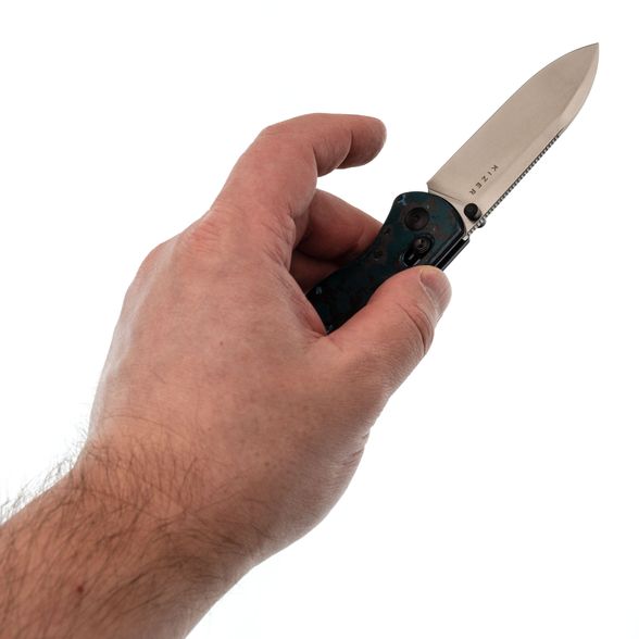 Drop Bear — это компактный складной нож, выпущенный брендом Kizer по дизайну ножевого мастера AZO. Модель быстро завоевала популярность среди пользователей и стала самой востребованной в ассортименте бренда. Главный акцент здесь сделан на сочетание простого, функционального дизайна, высококлассных материалов и внимательной сборки, характерной для всей продукции Kizer. Нож ориентирован на повседневное использование (EDC) и подойдёт как для опытных пользователей, так и для тех, кто выбирает первый качественный складной нож. Минималистичный внешний вид делает модель универсальной и неброской, а надёжная конструкция гарантирует долгий срок службы при активной эксплуатации.