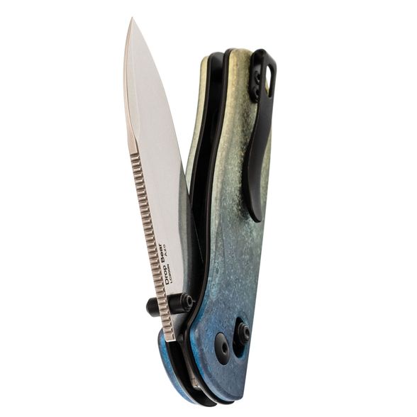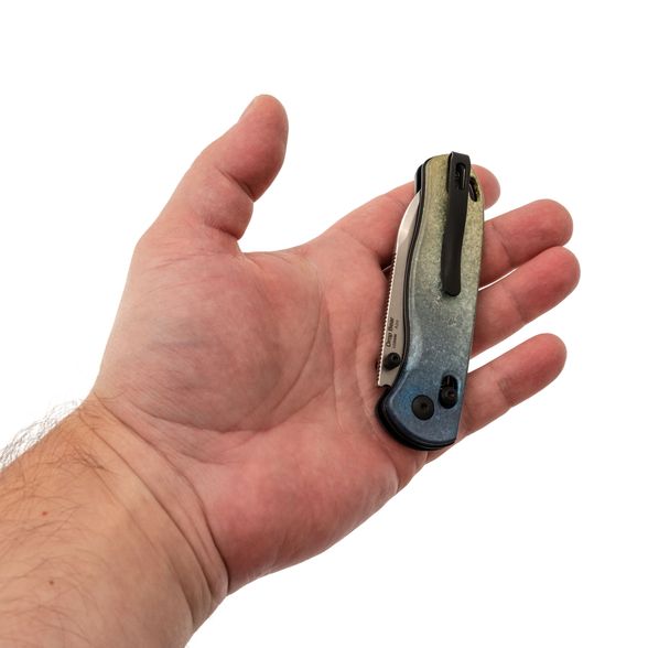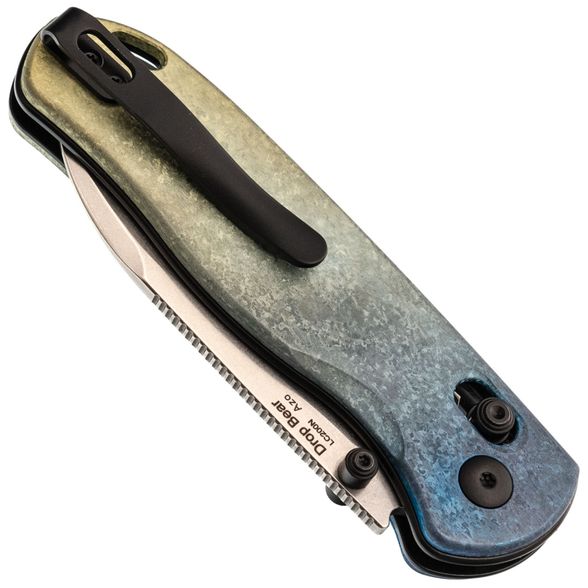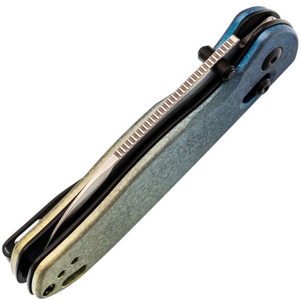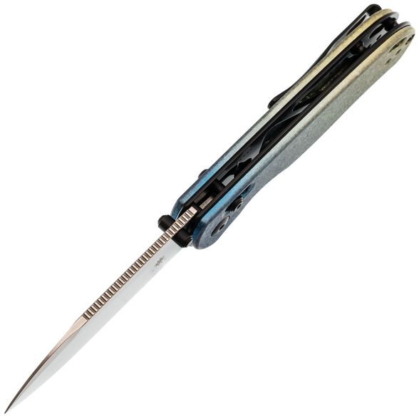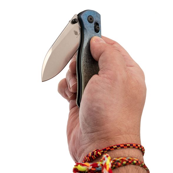Нейтрально изогнутая форма рукояти удобно ложится в любую руку. Накладки выполнены из титана - премиальный металл, который легче стали, но не сильно уступает в прочности. Имеет цветное анодирование.