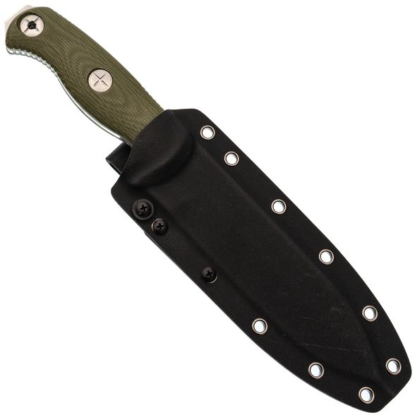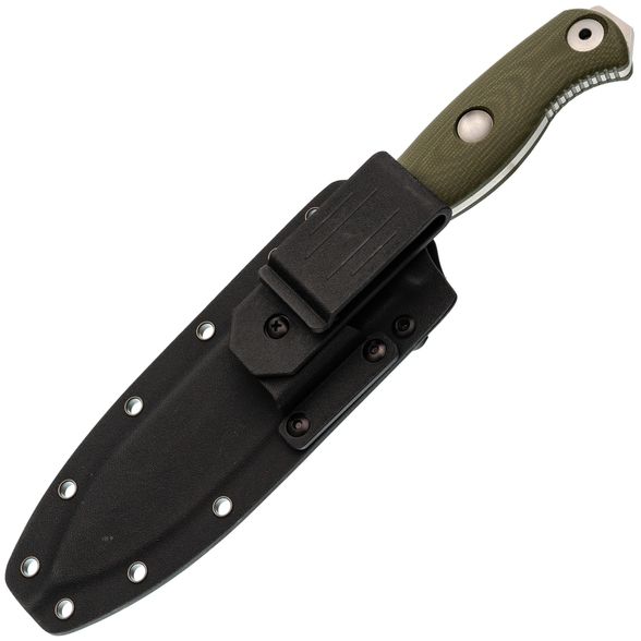 Kydex-ножны держат инструмент плотно, исключая люфт. За счёт широкой клипсы модель удобно носить на ремне, а система люверсов позволяет добавить другие варианты крепления. Это удобно для путешественников, которые ценят функциональность в каждой детали.