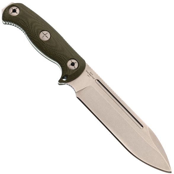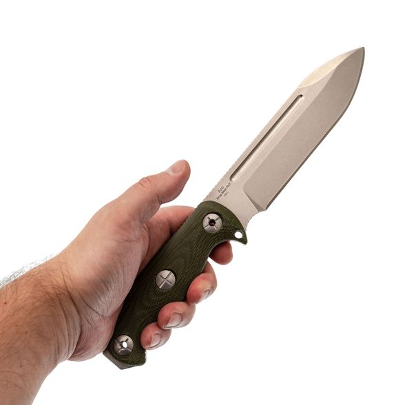 Микарта со временем становится ещё комфортнее в работе - материал слегка шероховатится, добавляя надёжности хвата. Эргономичный профиль позволяет руке естественно лечь на рукоять, снижая усталость при длительном использовании. Два отверстия для темляка дают простор для экспериментов с подвеской и фиксацией.