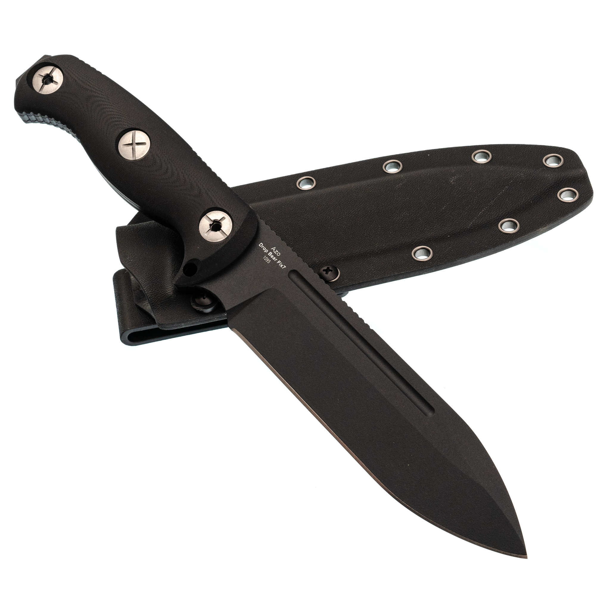 G10 делает рукоять особенно прочной и невосприимчивой к влаге. Даже в дождь или при работе в перчатках удержание остаётся надёжным. Конструкция заполнена без пустот, благодаря чему инструмент сидит в руке комфортно, не утомляя даже при долгом использовании. Отдельный плюс - пара отверстий для установки темляка через всю рукоять.