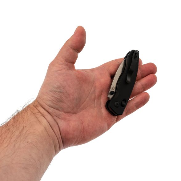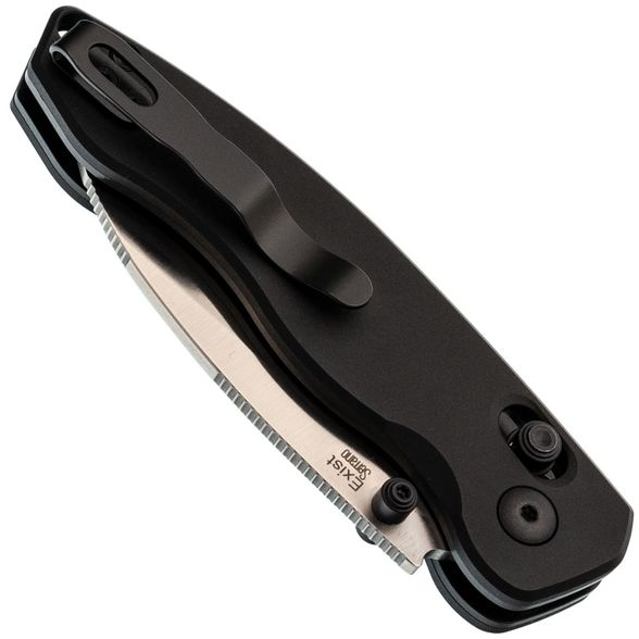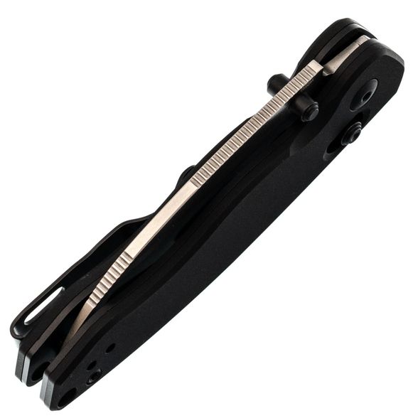 Рукоять ножа выполнена из легкого, но прочного алюминия, который устойчив к износу и воздействию внешних факторов. Её форма проста и эргономична, с плавным изгибом, который обеспечивает удобный и надежный хват. В модели используется замок Clutch-Lock, который отличается универсальностью и функциональностью. Этот механизм позволяет пользователю самостоятельно настроить усилие срабатывания замка, делая его более тугим или, наоборот, легким в зависимости от предпочтений. Дополнительным преимуществом является переставляемая клипса, которая позволяет удобно носить нож как под правую, так и под левую руку, подчеркивая его универсальность и продуманность конструкции.