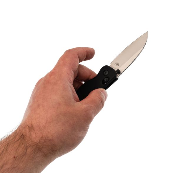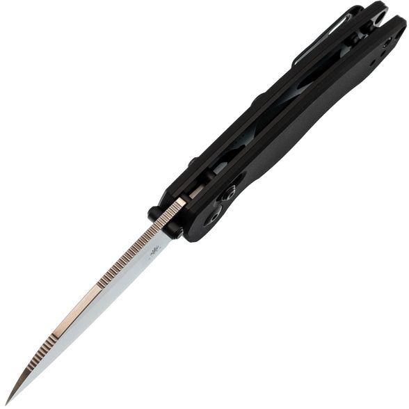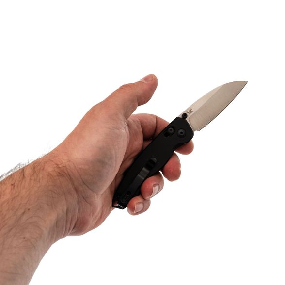 Клинок изготовлен из стали 154CM, которая относится к категории американских нержавеющих сталей высокого качества. Она обеспечивает длительное удержание остроты и надежно защищена от коррозии, что делает нож долговечным и неприхотливым в уходе. Профиль клинка — модифицированный Sheepfoot, который сочетает универсальность и функциональность. Этот тип клинка прекрасно подходит для строгания, точных движений и работы кончиком, таких как вскрытие упаковок или выполнение мелких разрезов. Прямота режущей кромки или её минимальный изгиб значительно упрощает процесс заточки, даже для неопытного пользователя. Для комфортного открытия клинка с любой стороны предусмотрены двусторонние шпеньки, что обеспечивает удобство в использовании как правой, так и левой рукой.