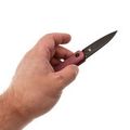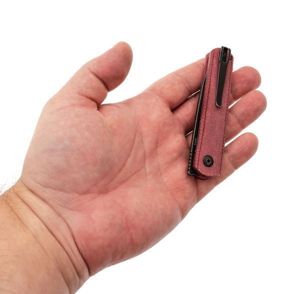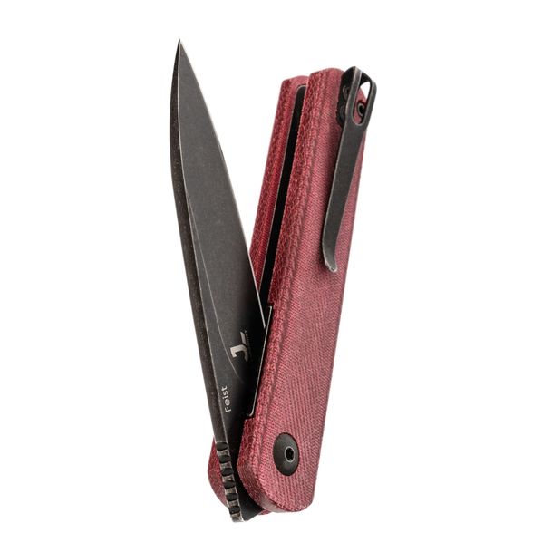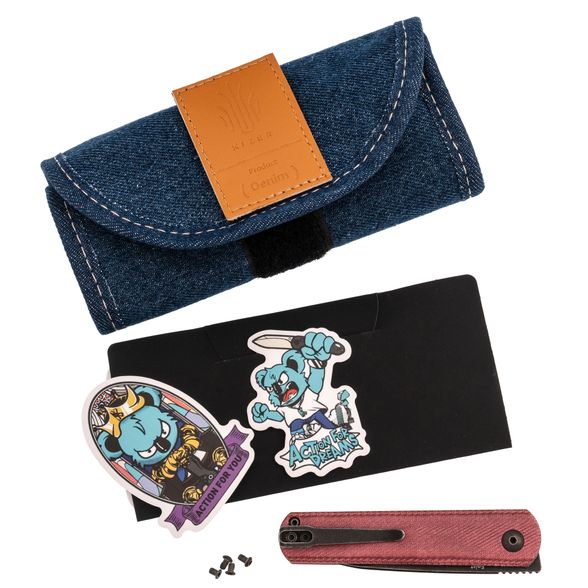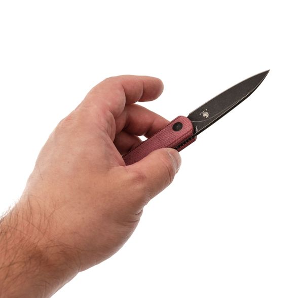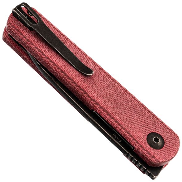 Рукоять ножа изготовлена из стальных лайнеров и красивой красной деним микарты. Эти материалы не только привлекательны внешне, но и обладают высокой прочностью и устойчивостью к влаге. Приятная на ощупь и надежная, рукоять Kizer Feist обеспечивает комфортное и безопасное использование.
