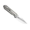 Рукоять из титана в сером цвете отличается цепким хватом, благодаря чему изделие удобно лежит в руке и обеспечивает уверенное управление. Эргономичная форма снижает нагрузку при длительном использовании, а глубокая карманная клипса позволяет надежно закрепить инструмент и носить его максимально комфортно. Продуманная геометрия и структура материала обеспечивают надежность и удобство эксплуатации, делая модель практичным выбором для повседневного применения.