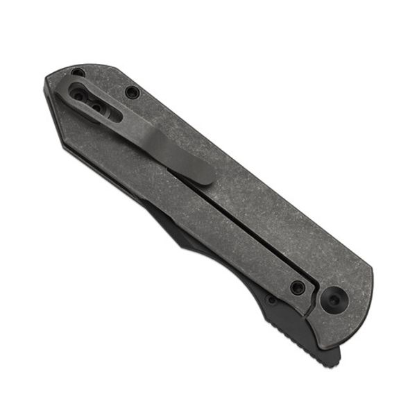 Рукоять из титана в сером цвете отличается цепким хватом, благодаря чему изделие удобно лежит в руке и обеспечивает уверенное управление. Эргономичная форма снижает нагрузку при длительном использовании, а глубокая карманная клипса позволяет надежно закрепить инструмент и носить его максимально комфортно. Сочетание премиального материала и продуманной геометрии делает конструкцию долговечной и удобной, обеспечивая уверенность в эксплуатации каждый день.