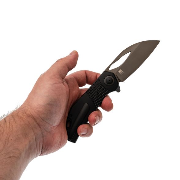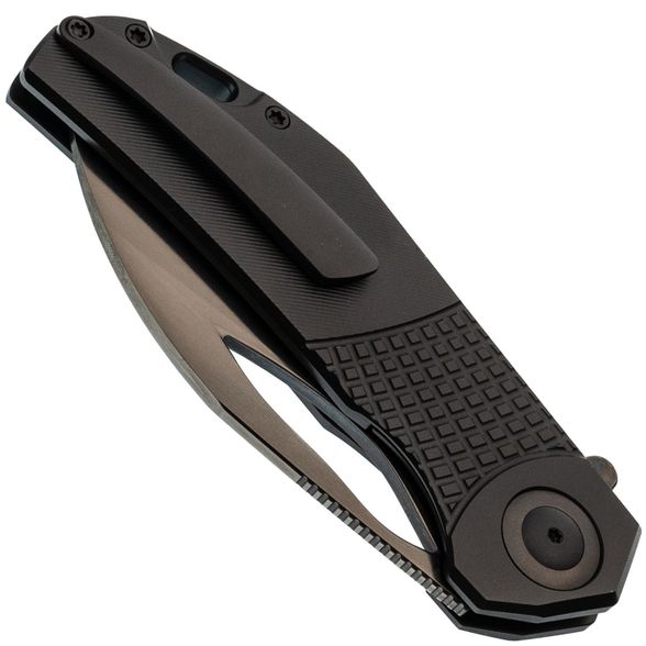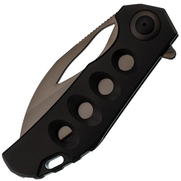Клинок ножа - настоящая гордость модели. Он изготовлен из премиальной порошковой стали M390, которая известна своей невероятной прочностью и способностью сохранять остроту на протяжении длительного времени. Кроме того, на клинок нанесено покрытие DLC (Diamond-Like Carbon), которое является одним из самых прочных на рынке. Это покрытие не только придает ножу стильный затемненный внешний вид, но и значительно повышает коррозионную стойкость, обеспечивая дополнительную защиту от воздействия окружающей среды. Профиль Sheepfoot позволяет выполнять точные работы, а высокие прямые спуски гарантируют превосходную режущую способность. Отверстие в клинке, напоминающее очертания хищной птицы, не только придает ножу уникальный характер, но и служит функциональной целью, обеспечивая удобное и быстрое открытие.