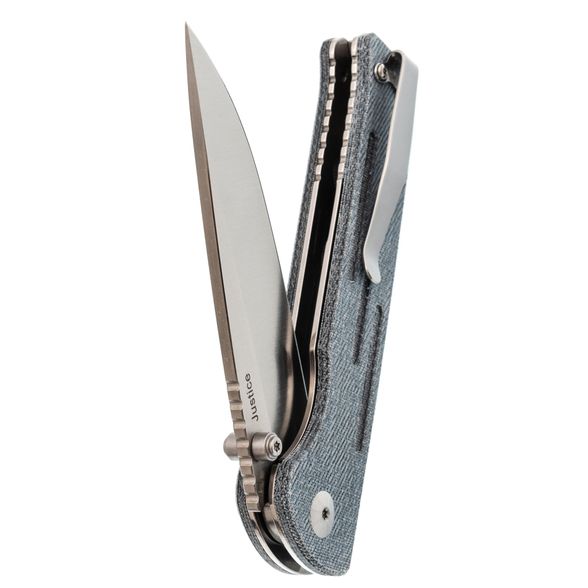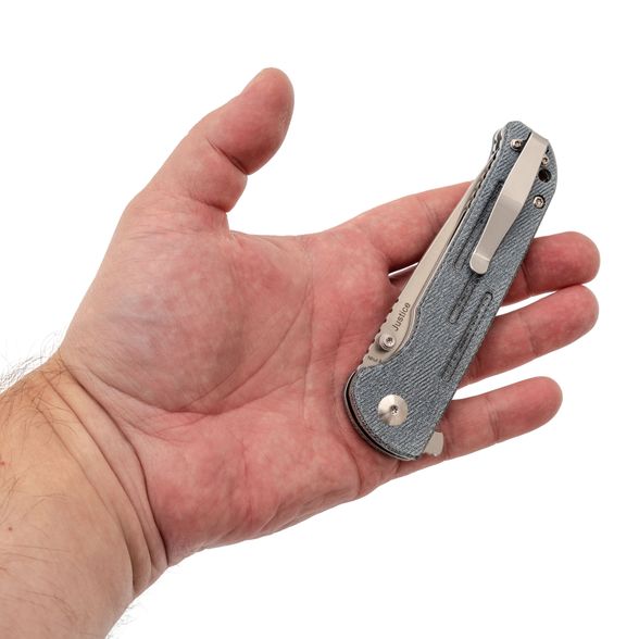 Kizer Justice - складной нож второго поколения из одноимённой линейки, обладающий уникальным и брутальным внешним видом. Накладки рукояти выполнены из Деним-микарты, что придаёт ножу современный и стремительный вид. Название модели можно перевести как "Рука правосудия", что символизирует свободу и справедливость. Этот нож - отличный выбор для тех, кто ценит как эстетику, так и функциональность.