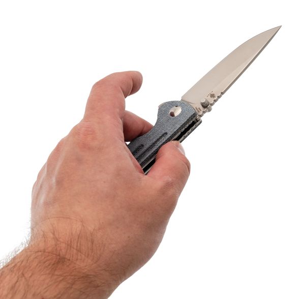 Клинок изготовлен из стали N690, которая славится своей способностью долго держать заточку и обладает хорошим сопротивлением коррозии. Профиль Drop-Point обеспечивает универсальность и удобство при выполнении различных задач. Высокие прямые спуски клинка значительно улучшают режущие свойства ножа, делая его идеальным для различных задач. Голомень служит для усиления лезвия, обеспечивая его прочность и устойчивость к нагрузкам.