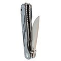 Рукоять имеет эргономичную форму с подпальцевой выемкой, что обеспечивает надёжный и комфортный хват. Выборки на накладках не только улучшают внешний вид, но и делают нож более технологичным. На навершии расположен скулкрашер, позволяющий выполнять дробящие движения, что расширяет функциональность ножа.