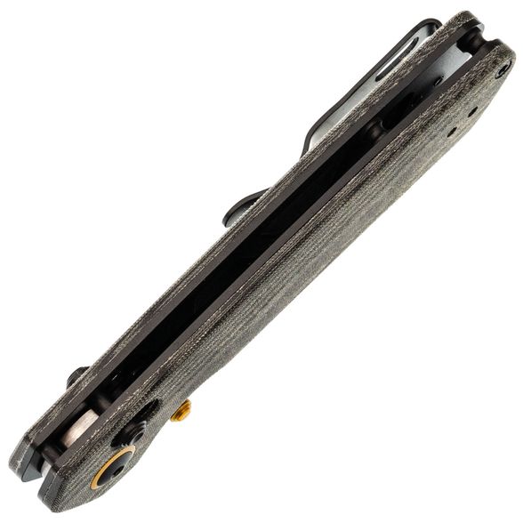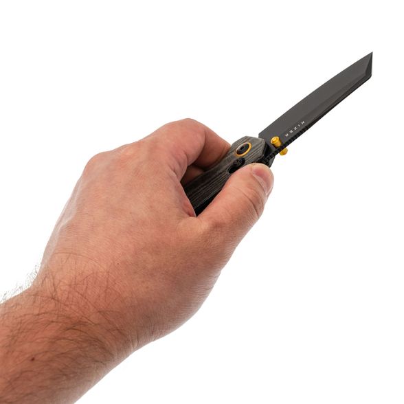 Чёрная микарта с фирменной неоднородной текстурой смотрится современно и дорого, а со временем приобретает индивидуальную патину. Форма рукояти - максимально простая, без лишних элементов, но с удобным подпальцевым упором. Это позволяет удерживать инструмент уверенно даже при длительной работе, снижая усталость кисти.