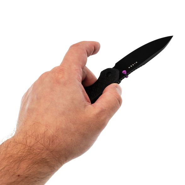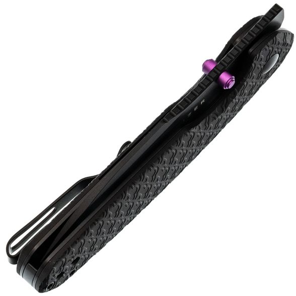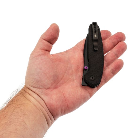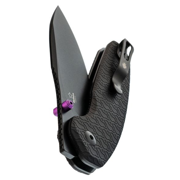Рукоять из микарты эргономично ложится в ладонь, не утомляя даже при длительной работе. Изогнутая форма и смещённая линия позволяют комфортно использовать его на поверхности стола. Карманная клипса добавляет удобства при ношении, обеспечивая быстрый доступ к инструменту в любой ситуации.