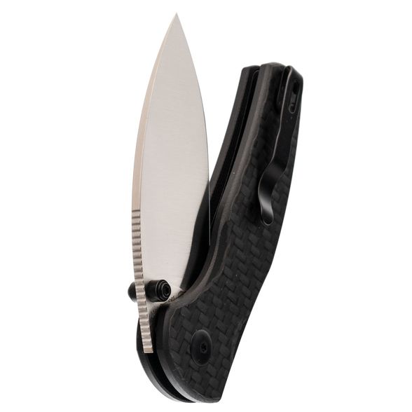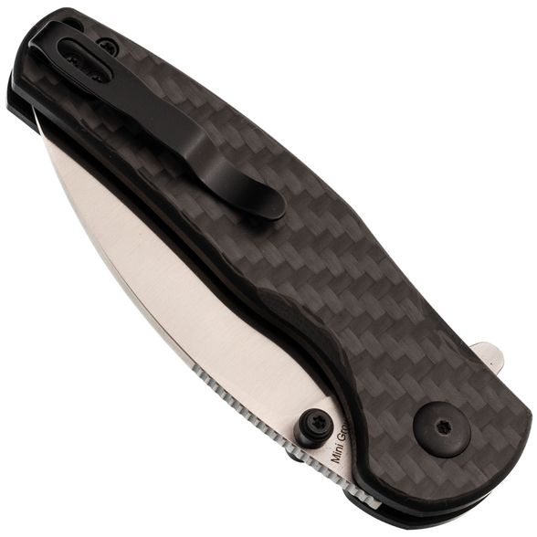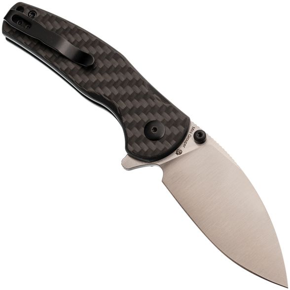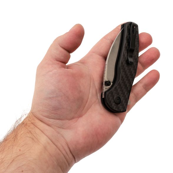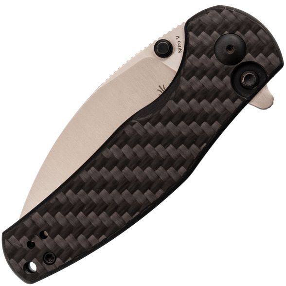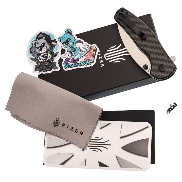 Рукоять Kizer Mini Grouper, повторяя изгиб клинка, обеспечивает удобный и надежный хват. Накладки из карбона не только придают ножу стильный внешний вид, но и обеспечивают отличную прочность и износостойкость. Глубокая переставляемая клипса и темлячное отверстие позволяют настроить его под свои предпочтения ношения.