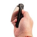 Нож Kizer Mini Grouper, названный в честь морской рыбы, сразу привлекает внимание своим необычным, дугообразным профилем. Но это не просто дизайнерский изыск: такое решение делает нож удобным, не смотря на непривычность. Кроме того, нож оснащен уникальным замком Liner-Lock, управляемым кнопкой, как у Button-Lock. Таким образом, он сочетает в себе преимущества двух типов замков, обеспечивая и удобство, и безопасность.