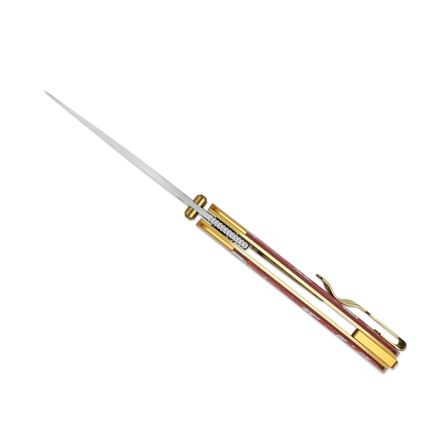 Drop-Point с тонким кончиком даёт точность в деталях. За счёт ширины клинка и высоких прямых спусков нож уверенно режет и строгает, сохраняя контроль даже на плотных материалах. Покрытие защищает поверхность и поддерживает аккуратный внешний вид. Открывание возможно через front flipper или шпеньки.