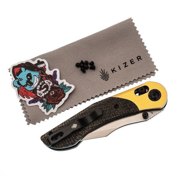 Kizer Mini Mystic — компактный складной нож, разработанный дизайнером Paul Munko. Его размеры чуть меньше среднего, благодаря чему модель удобна для EDC (Ношения каждый день). Дизайн сочетает практичность и оригинальный внешний вид, привлекающий внимание.