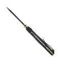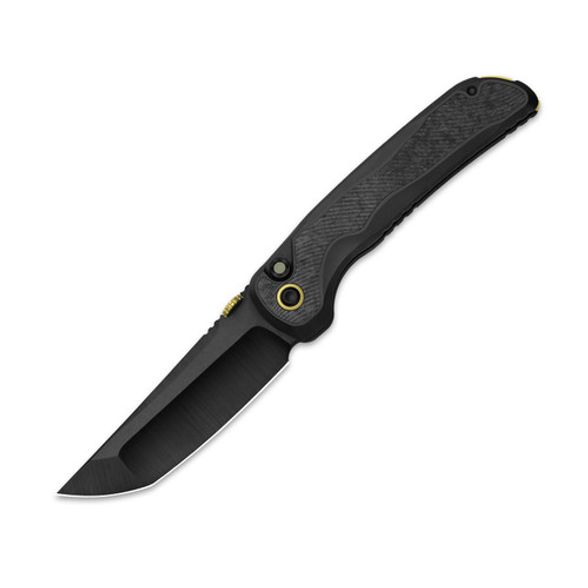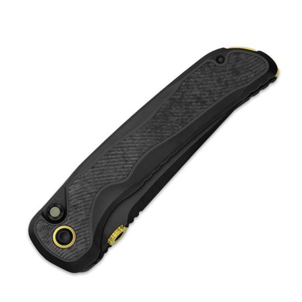 Рукоять из титана и карбона образует прочную и легкую основу, дополненную черной текстурой для уверенного хвата. Эргономичная форма обеспечивает комфорт при длительном использовании, а замок Button Lock гарантирует надежную фиксацию и удобство в управлении механизмом. Благодаря продуманной геометрии рукоять уверенно лежит в руке, обеспечивая стабильность и контроль в любых задачах.
