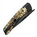 Kizer Momo - крупный складной нож, рассчитанный на ежедневную носку и широкий круг обычных городских задач. Модель создана Владимиром Легачёвым, а данное исполнение выпущено в сотрудничестве с НОЖИКОВ и является эксклюзивным. Здесь особенно цепляет рукоять: рисунок отсылает к гжели, но обыгран в сдержанной чёрно-золотой гамме. Смотрится это спокойно, дорого и даже немного празднично, при том что сам формат остаётся вполне рабочим.