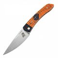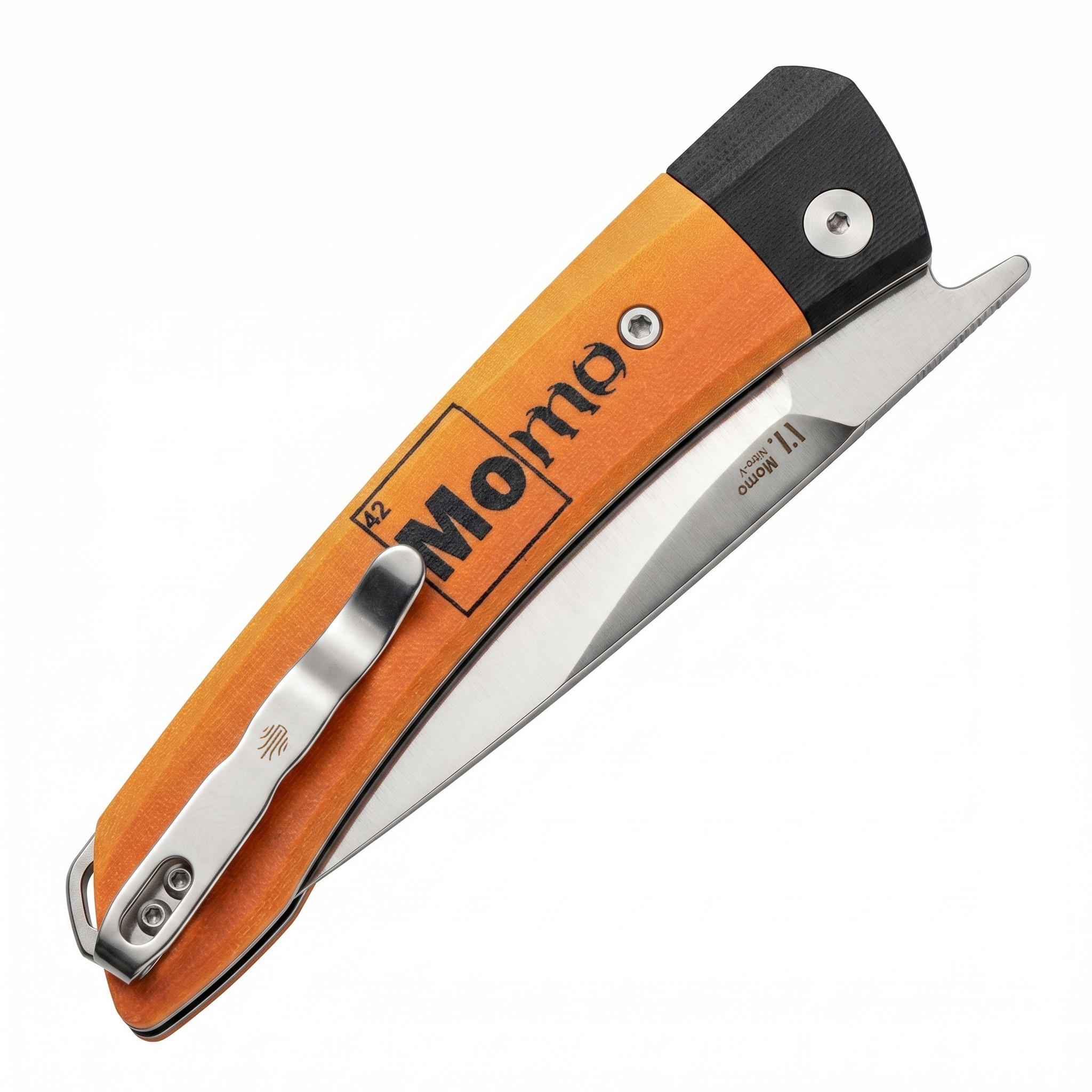 Клинок у Momo крупный, с высокими прямыми спусками, поэтому режет охотно и предсказуемо. Геометрия удачно подходит для повседневных задач, где нужен именно чистый и контролируемый рез. Кончик у модели деликатный, им удобно выполнять точные надрезы и аккуратно входить в материал, но для грубой боковой нагрузки он не рассчитан. Открывается нож за крупный фронт-флиппер: движение получается понятным и бодрым. За фиксацию отвечает Liner-Lock - простой и надёжный замок для каждодневной работы.