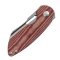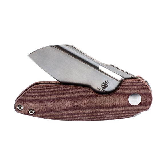 Складной нож Kizer October, сталь CPM 20CV, рукоять Red Micarta - небольшой, стильный, компактный и приятный во всех отношениях. Если вы любите аксессуары, которые постоянно хочется держать в руке, вам стоит обратить внимание на эту модель. Продуманная эргономика и современный дизайн превращают эту модель в надежного спутника на каждый день. Среди интересных моментов стоит отметить, что благодаря особой форме клинка нож немного похож на опасную мужскую бритву. Возможно он не сгодится для ошкуривания оленя и выполнения других бушкрафтерских задач, но с набором городских функций он справится вполне успешно. И при этом доставит немало удовольствия своему владельцу за счет отличного реза и приятных тактильных ощущений.