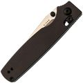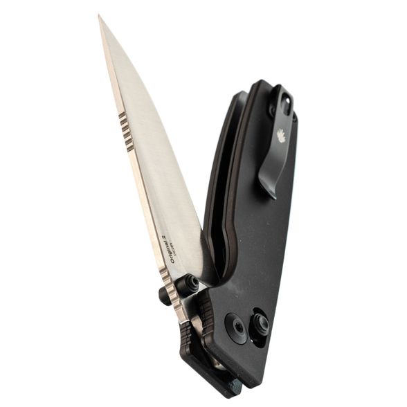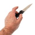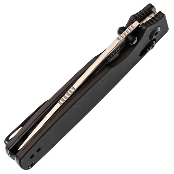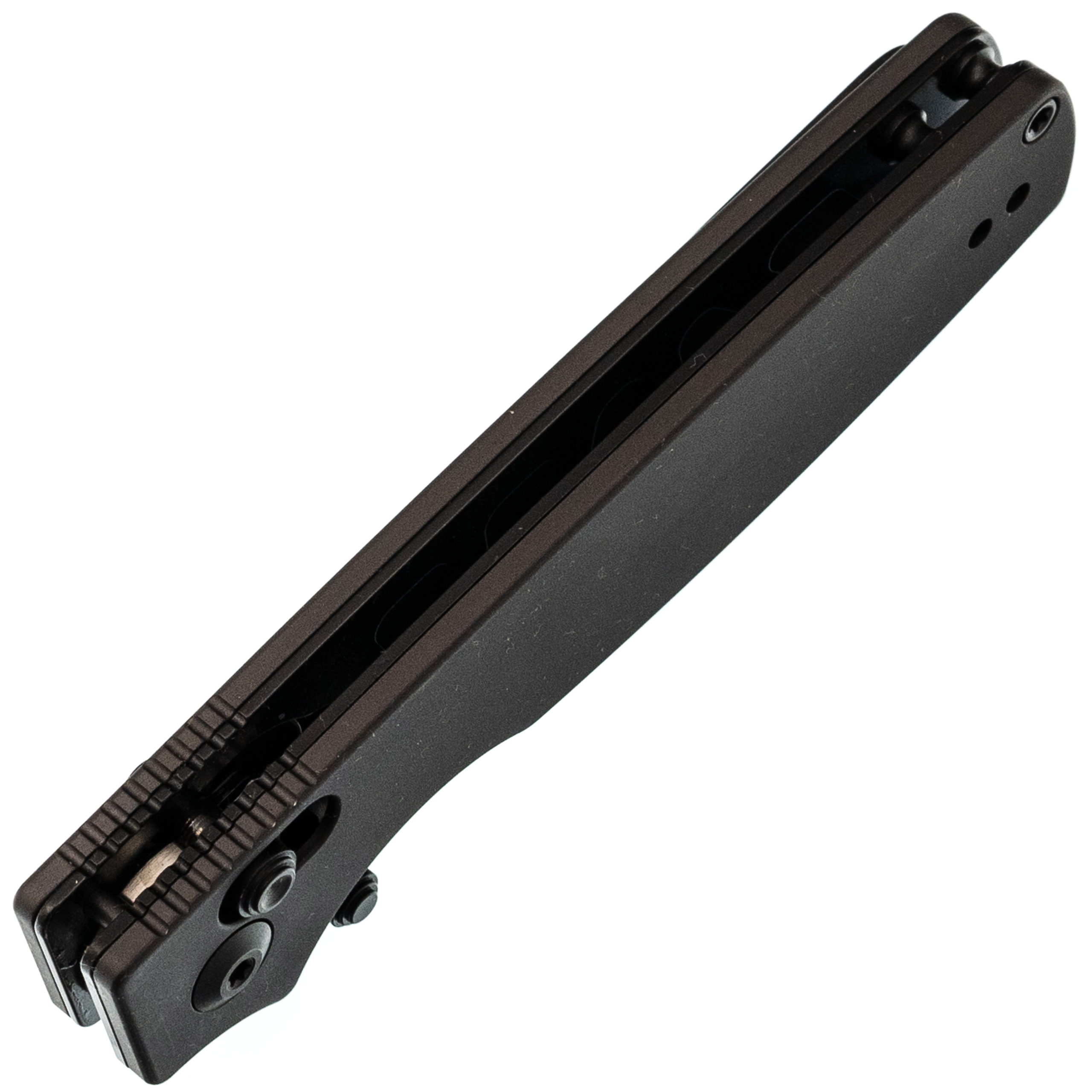 Рукоять из черного алюминия имеет простую и эргономичную форму, обеспечивая надёжный хват. Для открывания используется удобный шпенёк, который легко зацепить пальцем. Главная особенность - механизм фиксации crossbar lock. Он считается одним из самых безопасных и удобных.