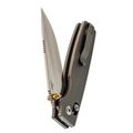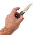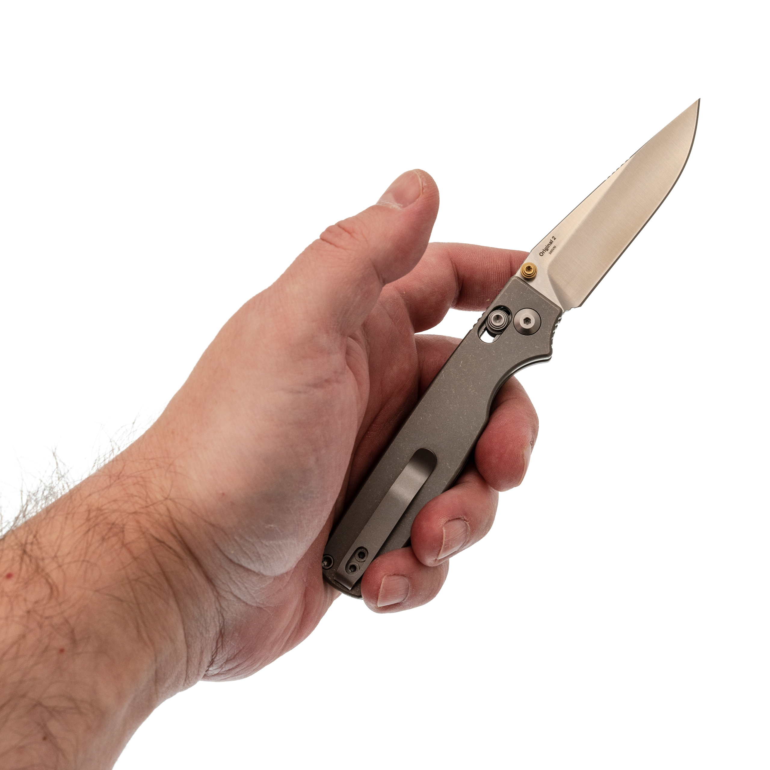 Эргономичная титановая рукоять обеспечивает уверенный и комфортный хват. Система открывания с помощью шпенька позволяет легко и быстро привести инструмент в рабочее состояние одной рукой. А механизм Crossbar Lock гарантирует безопасность и надёжную фиксацию клинка во время использования. Всё это делает взаимодействие с инструментом простым и предсказуемым.