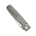 - Рукоять из титана: Титановая ручка сочетает в себе прочность и малый вес. Она не подвержена ржавчине и приятно лежит в руке, а её серый цвет выглядит стильно и практично.