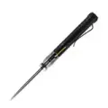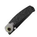 Клинок Pioneer выполнен из стали CPM-20CV с профилем Drop-Point и высокими прямыми спусками. Такая геометрия даёт комфортный, предсказуемый рез по картону, стропам, продуктам и прочим ежедневным задачам. DLC-покрытие снижает блики и дополнительно защищает сталь. Открыть клинок можно так, как удобнее именно вам: аккуратным движением за front flipper или за шпеньки - оба варианта работают легко и чётко. В раскрытом положении клинок надёжно удерживается замком Liner-Lock, так что можно спокойно работать, не думая о случайном складывании.