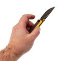 Клинок с практичной формой Drop-point покрыт износостойким чёрным DLC-покрытием. Это покрытие не только придаёт ему тактильный вид, но и обеспечивает дополнительную защиту от царапин и влаги, делая его крайне практичным для ежедневного использования.
