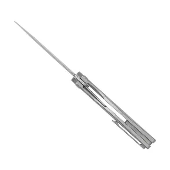 Рукоять из титана спрофилирована так, чтобы нож надёжно сидел в ладони, не выскальзывал и не натёр руку при длительной работе. Кожаные вставки по форме напоминают больстеры старых складных ножей и делают Raze более живым и уютным. Карманная клипса отвечает за удобное ношение, а механика с замком Liner-Lock даёт уверенность при любых бытовых задачах.
