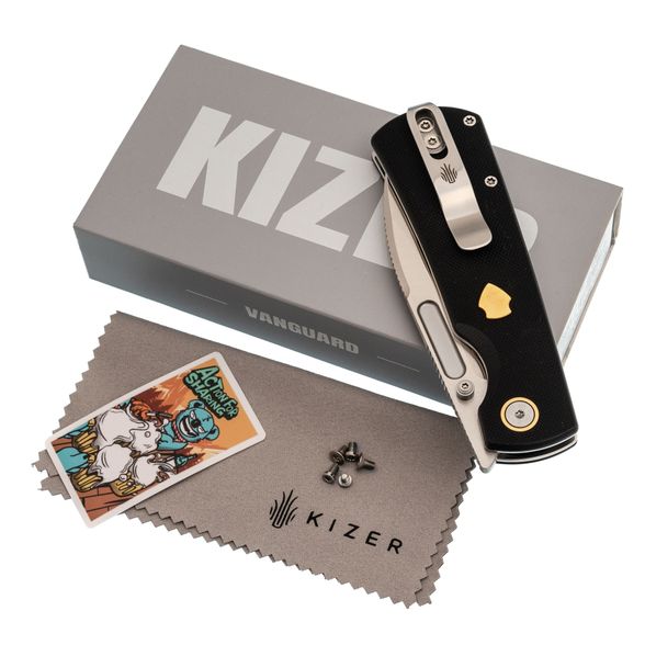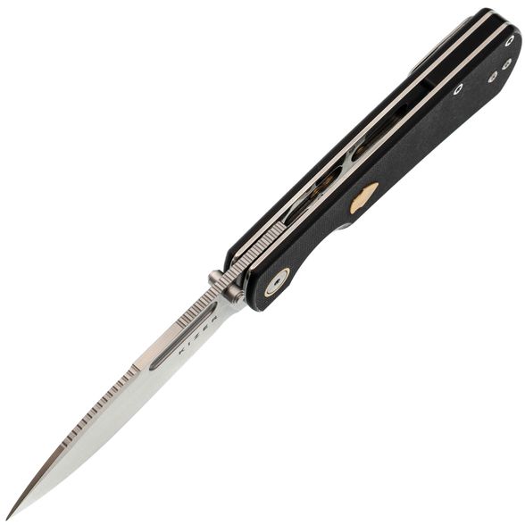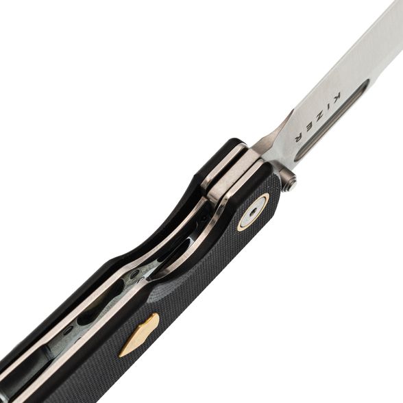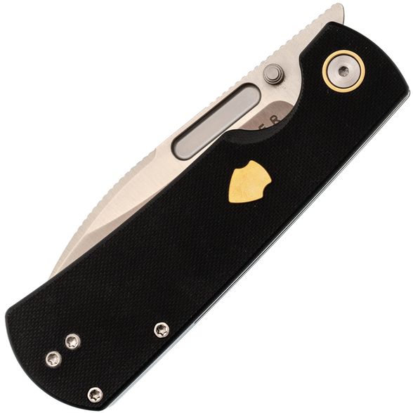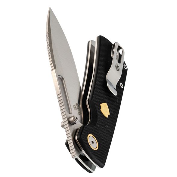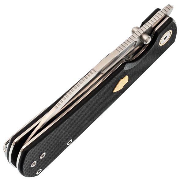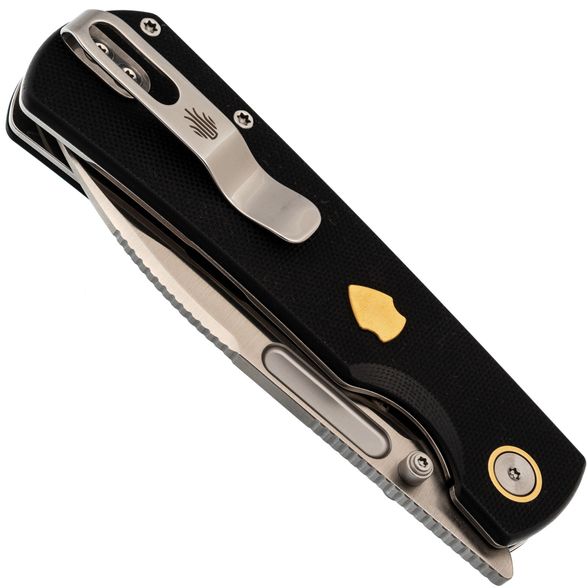 Форма рукояти отдаёт дань уважения классике, но здесь появились элементы, которые не встретишь на старых моделях: подпальцевая выемка для дополнительного контроля, латунная вставка в виде щита для особого шарма. Liner-Lock надёжно фиксирует клинок, а компактная клипса делает переноску максимально удобной. Такая рукоять рассчитана на постоянное использование, а не просто на коллекционную полку.
