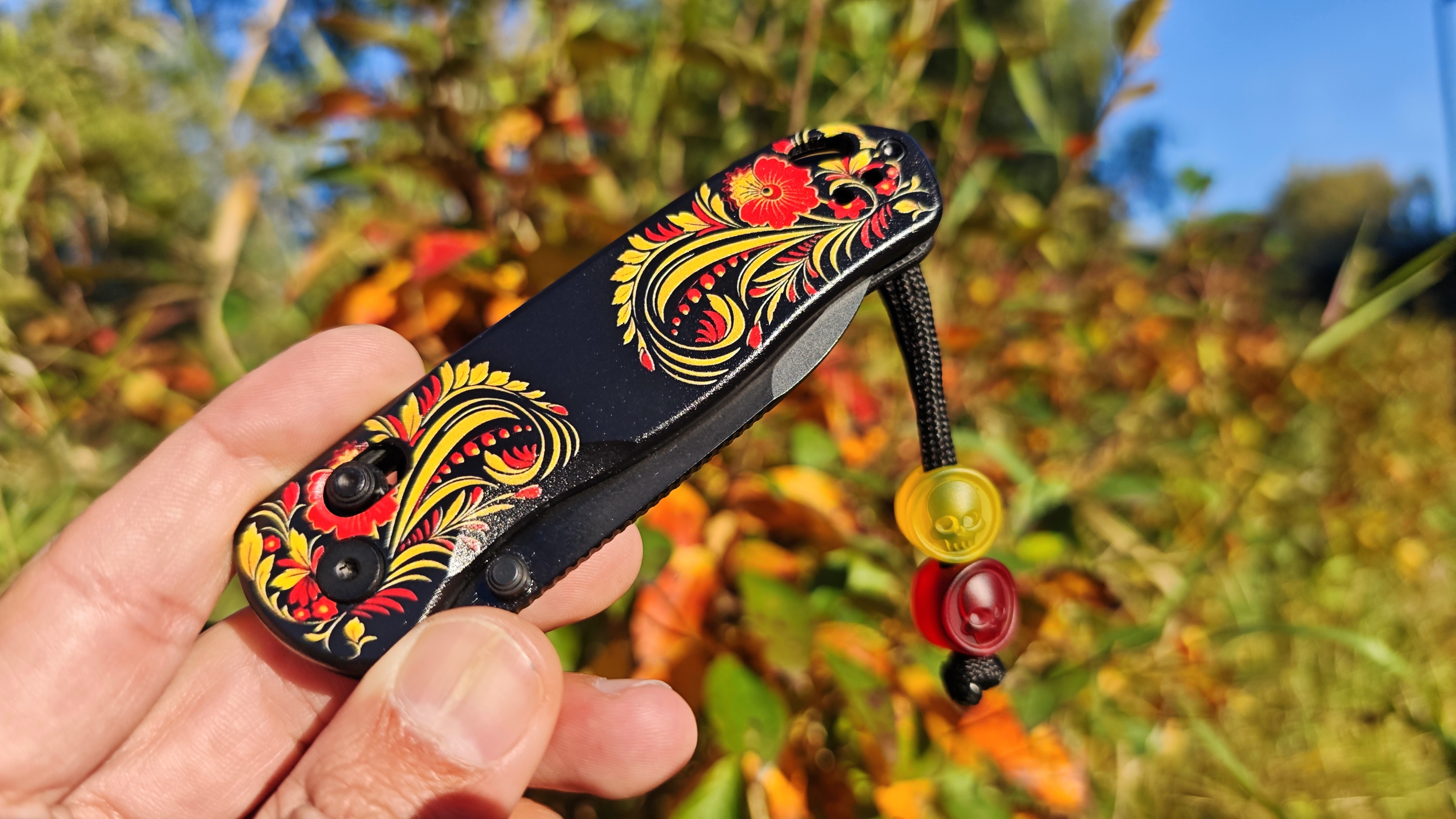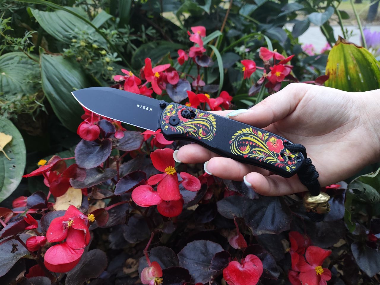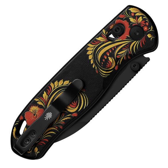 Russian Drop Bear - это модификация известной модели Drop Bear от Kizer, созданная в коллаборации с магазином Nozhikov.ru. Хохлома - это традиционная русская роспись, знаменитая своими яркими красными, черными и золотыми узорами, которые использовались для украшения деревянных предметов быта. Элементы хохломы на рукояти ножа придают ему особую эстетику, создавая гармоничное сочетание технологий и русской культурной традиции.