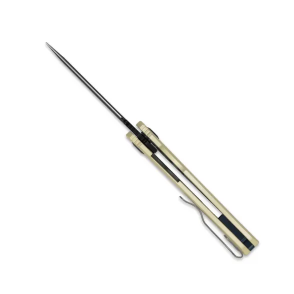 Алюминиевая рукоять. Лёгкий и жёсткий металл, не боится перепадов температуры и не «набирает» влагу. Обеспечивает приятный баланс по весу: нож почти не ощущается в кармане, но в руке чувствуется собранным и монолитным.