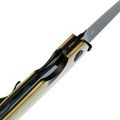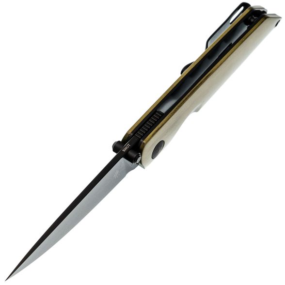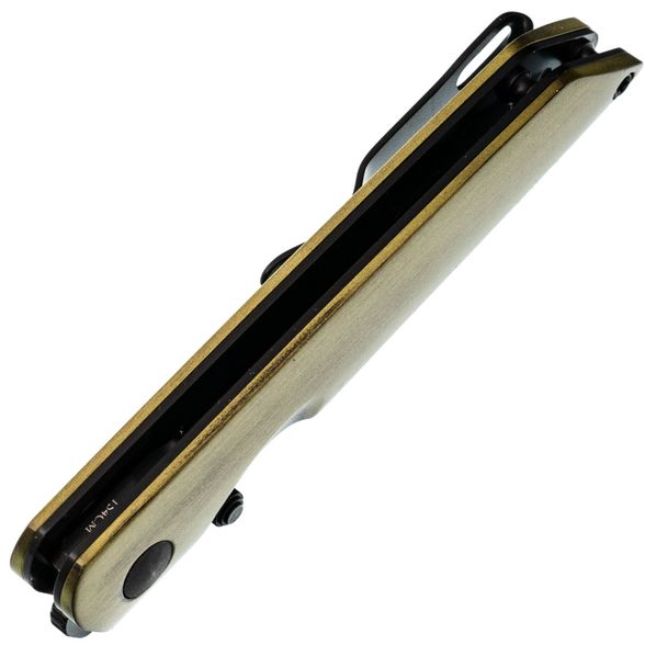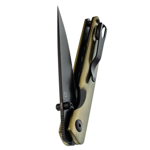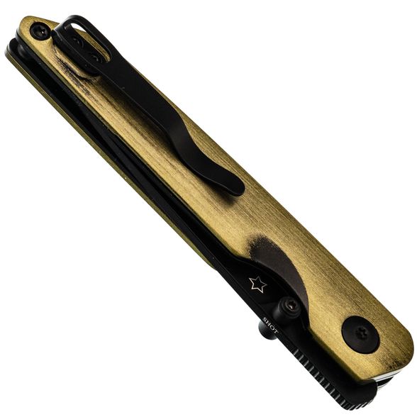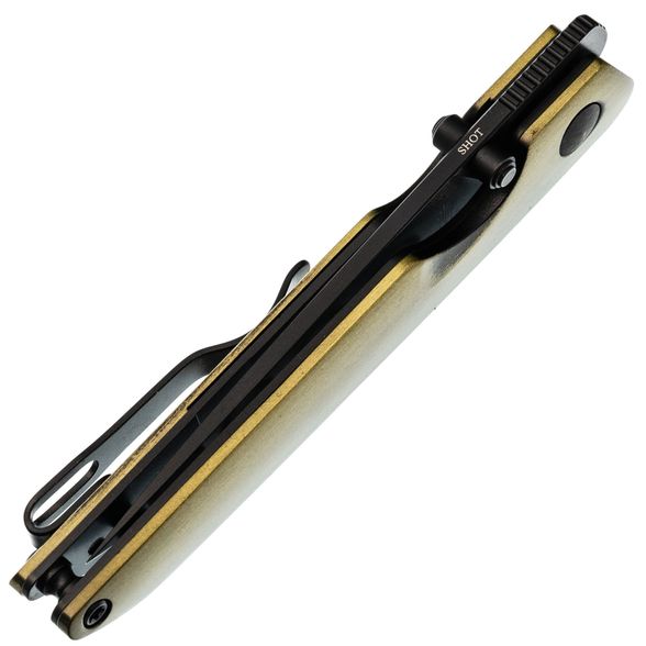 Kizer Shot — компактный и изящный складной нож, разработанный дизайнером Evgeniy Bulichev. Он станет отличным выбором для тех, кто ищет джентльменский нож или предпочитает элегантные режущие инструменты. Эта модель также будет достойным пополнением коллекции для ценителей утончённого дизайна.