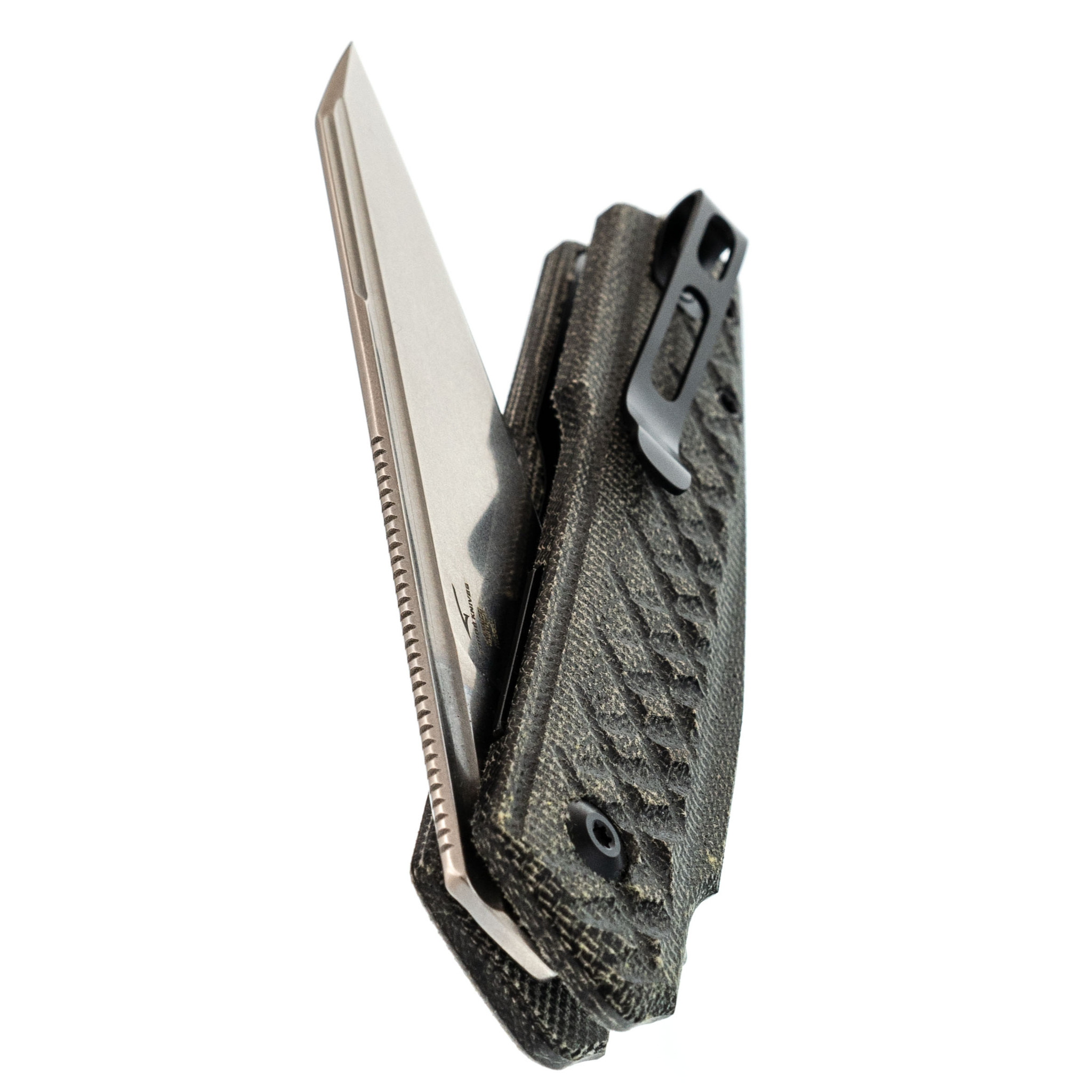 Клинок Reverse Tanto с отличной геометрией и акцентом на кончик позволяет выполнять точные и аккуратные надрезы. Высокие спуски и тонкий обух обеспечивают отличную режущую способность, позволяя ножу справляться с любыми задачами, от нарезки до более сложных действий.