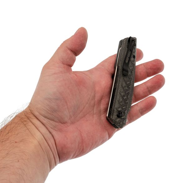 Микарта - рукоять выполнена из прочного материала с хорошими антискользящими свойствами, что добавляет уверенности при использовании ножа.