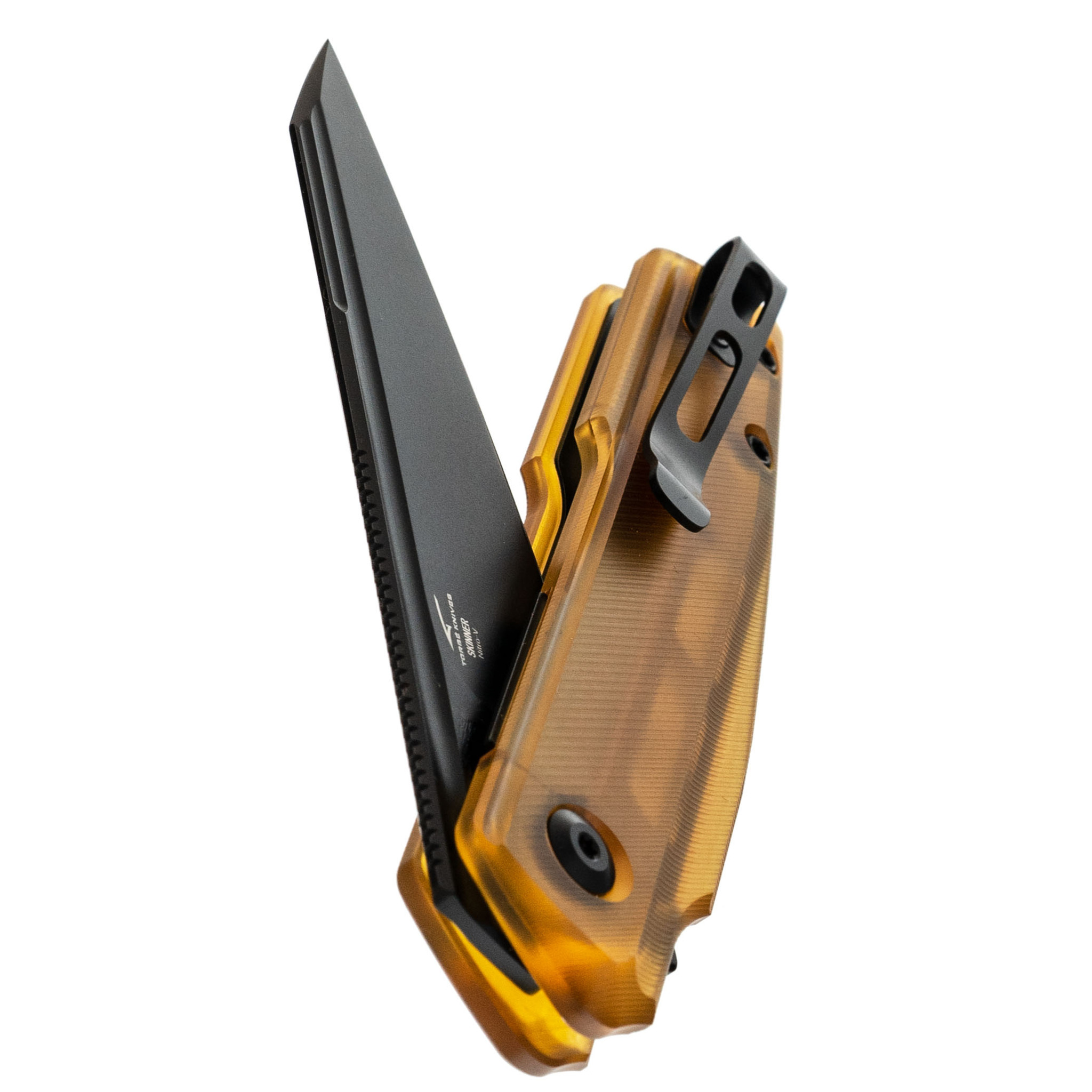Клинок с уникальным Reverse Tanto профилем выделяется за счет выдающегося кончика, который отлично подходит для точных и аккуратных надрезов. Высокие прямые спуски и тонкий обух гарантируют отличные режущие характеристики, что делает нож подходящим для любых повседневных задач.