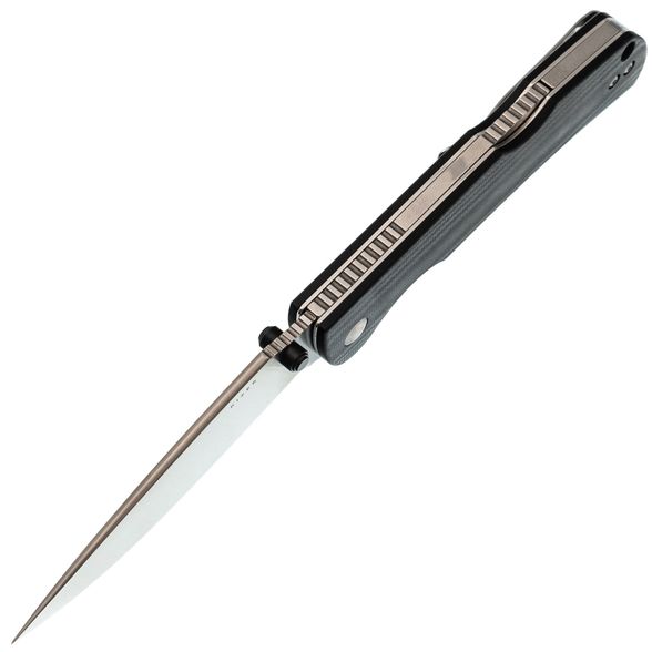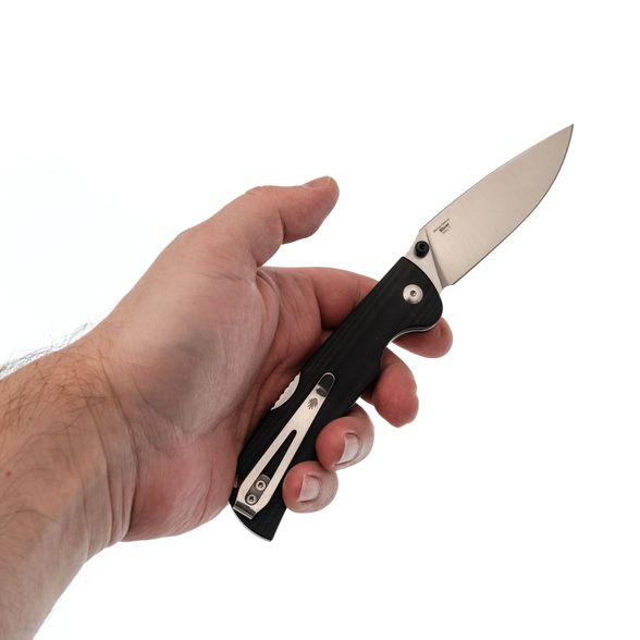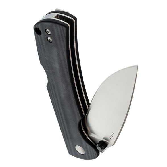 Клинок изготовлен из стали Nitro-V, известной своей нержавеющей способностью, высокой твёрдостью (60-61 HRC) и удержанием остроты. Этот материал также позволяет затачивать нож на тонкие углы, что необходимо для отличной резучести ножа. Универсальная геометрия клинка с профилем Drop-Point проста в обращении, а прямые спуски от обуха обеспечивают отличные режущие свойства. Для открытия используются двусторонние шпеньки, позволяющие удобно открывать нож как правой, так и левой рукой.