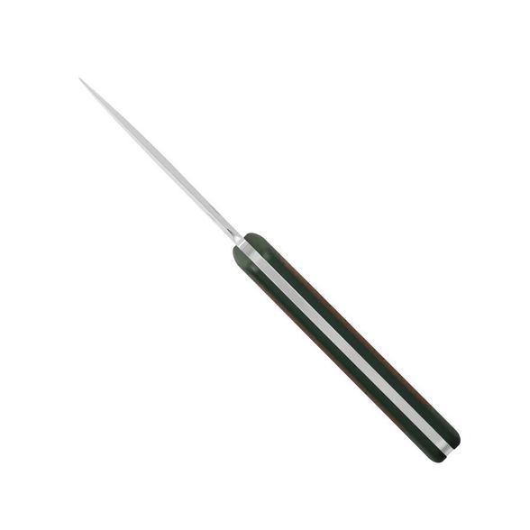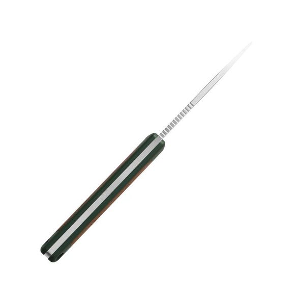 Клинок изготовлен из высококачественной нержавеющей стали Nitro-V, обеспечивающей отличную коррозионную стойкость и легкость заточки. Геометрия клинка в форме Drop-Point с прямыми спусками делает нож универсальным инструментом. Такой дизайн позволяет выполнять различные задачи, от нарезки продуктов до строгания древесины в походе.