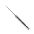 Титановый больстер и деревянная накладка из Mkuruti разделены визуально, как на исторических джентльменских моделях. Форма рукояти позволяет удобно разместить пальцы, нож не "кусает" ладонь даже при длительном резе лёгких материалов. Отсутствие клипсы настраивает на носку в кармане брюк или пиджака, рядом с ключами и ежедневником.