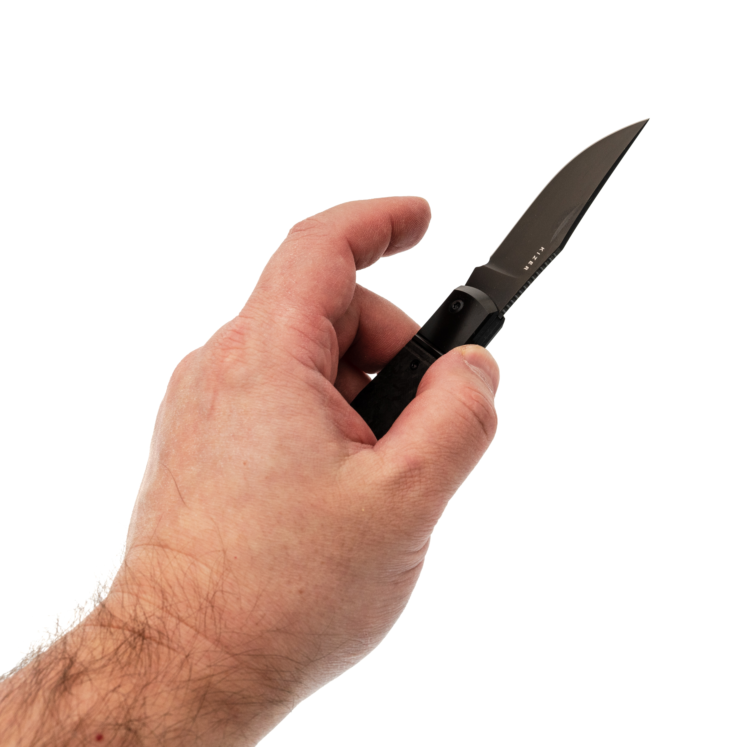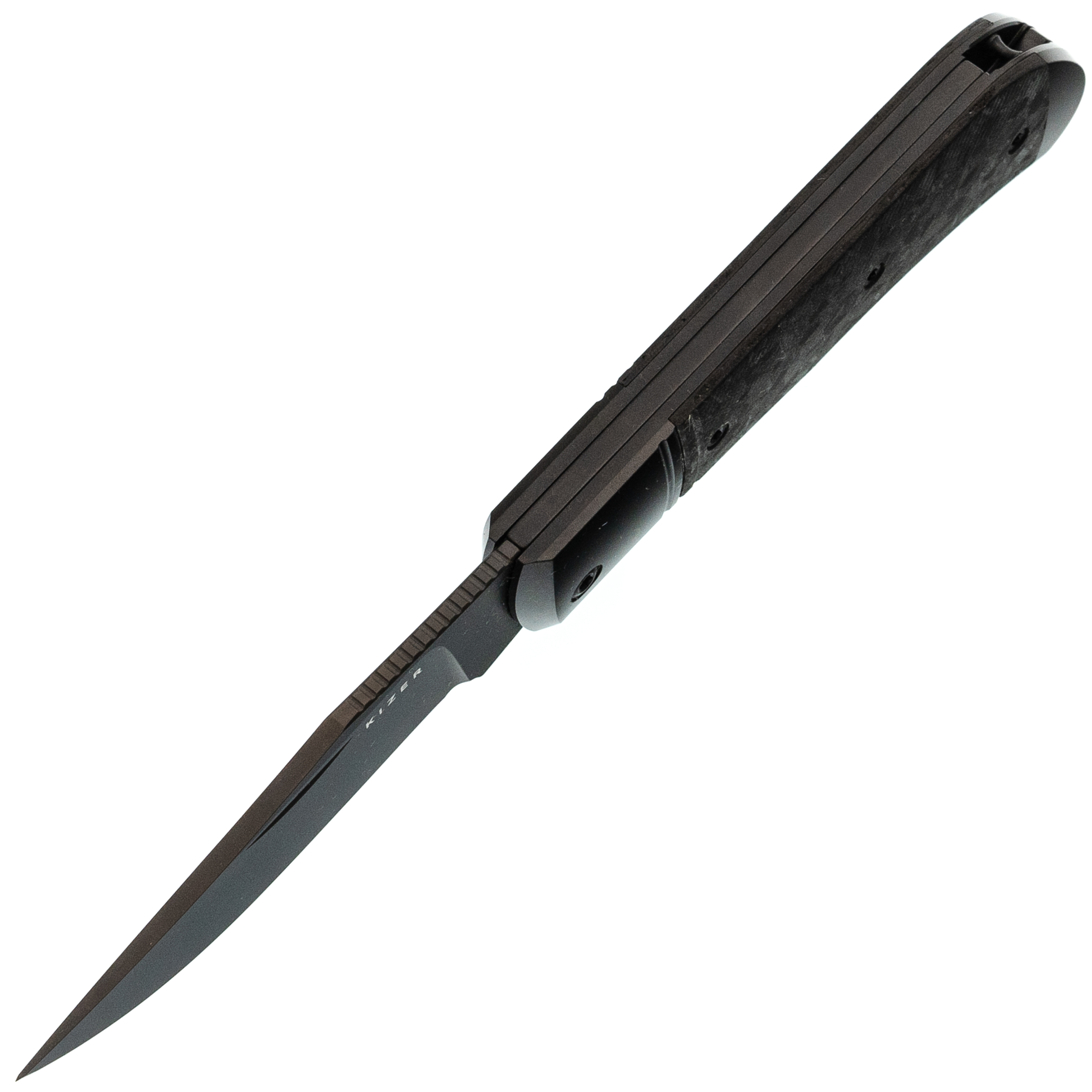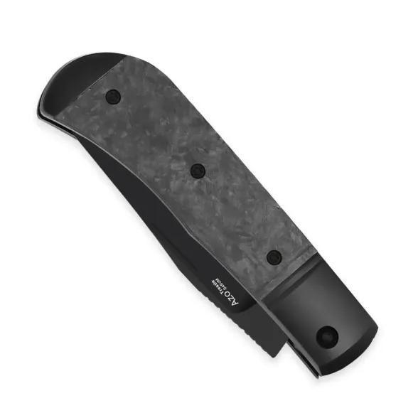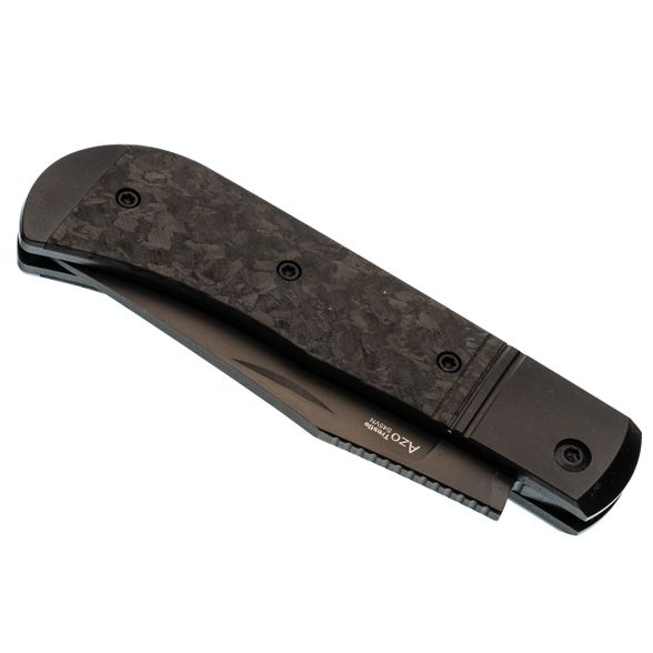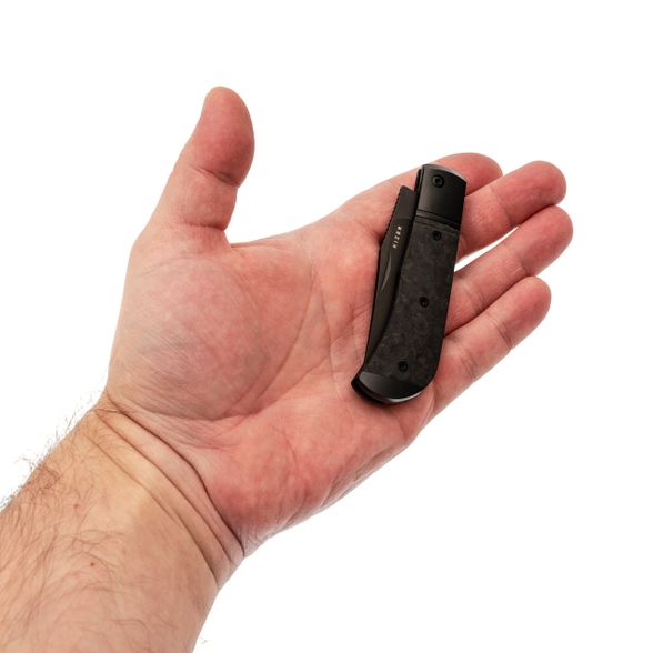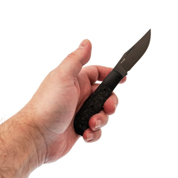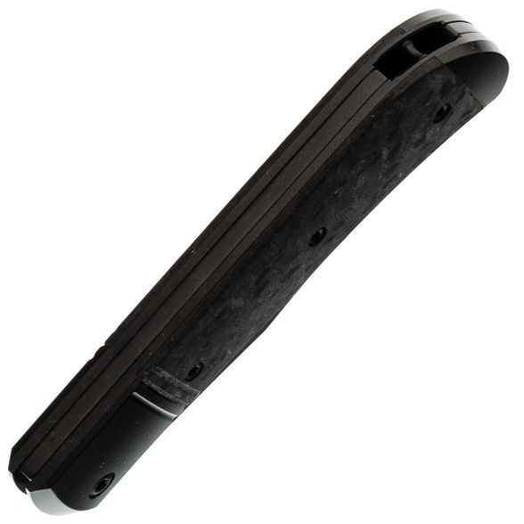 Титановый больстер и накладка из мраморного карбона создают строгий, но дорогой по ощущению образ. Рукоять удобно заполняет ладонь и обеспечивает уверенный контроль при резе. Клипсы нет - нож логично носить в кармане пиджака, в чехле или органайзере, как личный аккуратный инструмент, который радует владельца каждый раз, когда оказывается в руке.