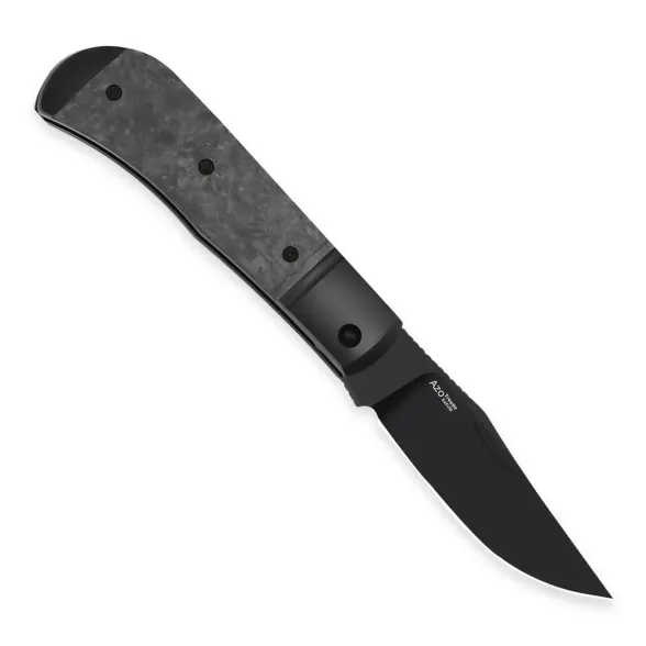 Классический Clip-Point из S45VN с высокими спусками уверенно работает по большинству бытовых задач, от упаковок до мелкой хозяйственной работы. Тонкое сведение и DLC-покрытие помогают клинку легче входить в материал и дольше сохранять аккуратный внешний вид. Ногтевые зацепы с обеих сторон клинка поддерживают традиционный двухручный формат открытия, который хорошо сочетается с Slip-Joint-пружиной.