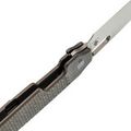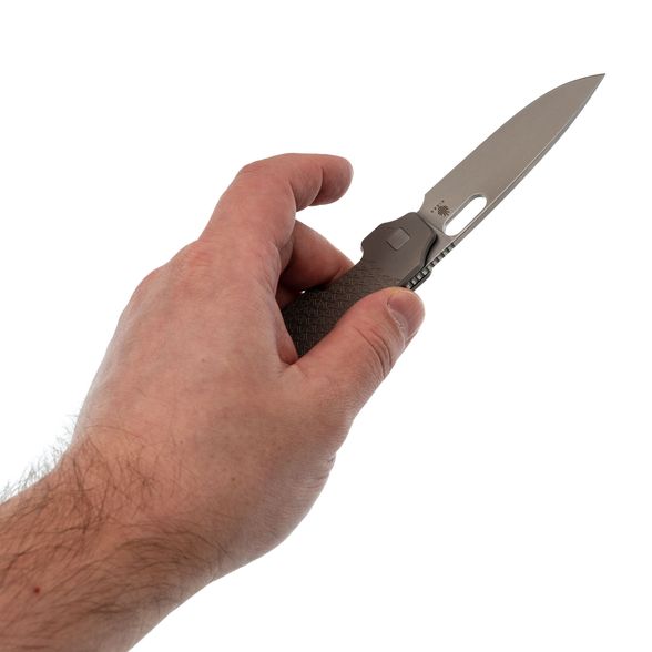 Клинок Kizer Varatas выполнен из высококачественной стали CPM-S35VN, которая известна своей отличной коррозионной стойкостью и способностью долго удерживать заточку. Это делает нож отличным вариантом для универсального использования, так как он будет эффективно работать в самых разных условиях. Режущая геометрия клинка отличается великолепными прямыми спусками от обуха и классической формой Drop-Point, что обеспечивает отличную проникаемость и стабильность при резе. Открывается нож с помощью практичного отверстия в клинке, что позволяет легко и удобно развернуть его одной рукой.