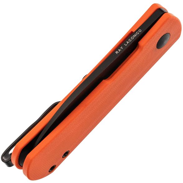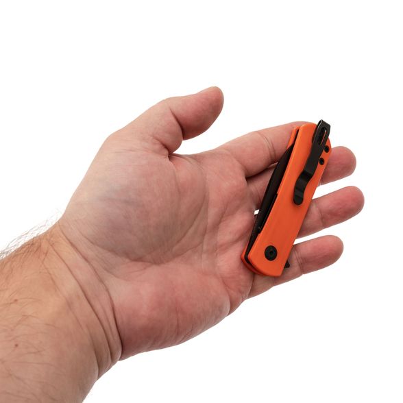 Рукоять выполнена из стеклотекстолита G10, который гарантирует прочность и надежность. Этот материал не выцветает, что особенно важно для сохранения яркого оранжевого цвета рукояти. Нож оснащен клипсой для удобного ношения, которая обеспечивает глубокую посадку в кармане. Замок Liner-Lock надежно фиксирует клинок, делая нож безопасным в использовании для повседневных задач. Kizer Yorkie Orange - это отличный выбор для тех, кто ценит функциональность, качество и оригинальный дизайн.