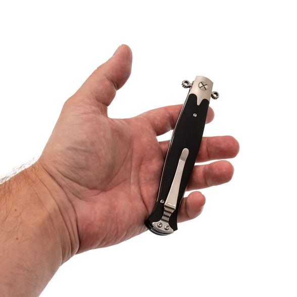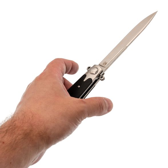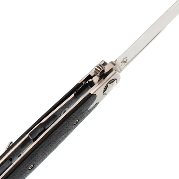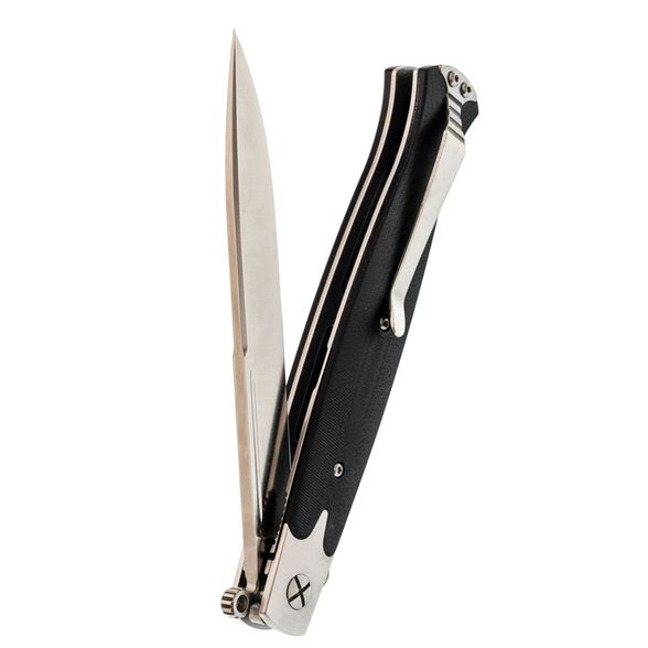 СКЛАДНОЙ НОЖ КОМАНДОР-01, СТАЛЬ D2 понравится ценителям острых и неординарных ножей. Нож имеет внешность классического итальянского кинжала, который использовался в средние века для скрытого ношения с целью самообороны. Узкий и длинный клинок этой модели имеет высокие спуски и бритвенно острую режущую кромку. Лазерный рез этого ножа порадует тех, кто устал от толстых тактических клинков сложной формы. К тому же, здесь большое значение уделено безопасности — на пятке клинка размещены упоры-флипперы, которые защищают пальцы от соскальзывания на клинок. Материал клинка — американский инструментальный сплав D2, который обладает повышенным содержанием хрома для максимальной защиты от коррозии.