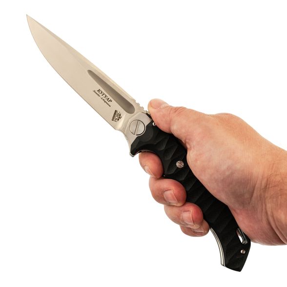 Представляем в наличии складной нож КУГУАР, арт. 332-100406. Это модель, которая может стать отличной альтернативой для тех, кто ищет крупный и эффективный складной нож, но пока не готов переплачивать за тактические изделия. В производстве клинка были использованы долговечные материал и надежные механизмы трансформации. После нескольких лет активного пользования не возникает люфт и других дефектов. Подойдет для ношения каждый день, но важно понимать, что из-за длины лезвия 121 мм экспонат относится к холодному оружию.
