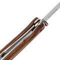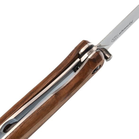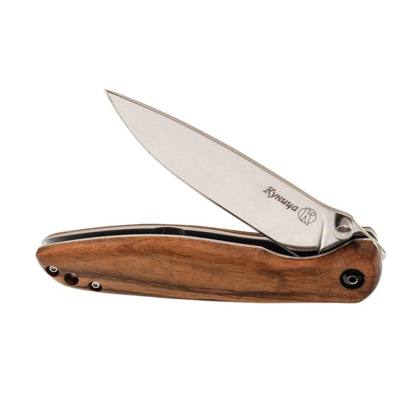 Складной нож Куница, Кизляр пользуется особой популярностью в своей линейке. Нож имеет острый клинок из AUS-8 стали, обух клинка понижается в сторону острия, что значительно улучшает разрезание. Раскладывание можно произвести одной рукой, фиксация производится при помощи надежной системы Liner-Lock. Рукоять выполнена из микарты в виде двух пластин, скрепленных при помощи трех винтов.