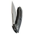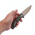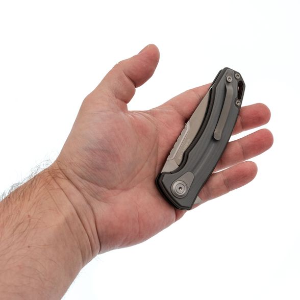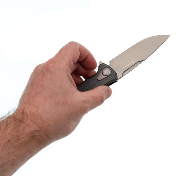 Клинок изготовлен из дорогой стали M390, которая обеспечивает длительное удержание заточки и превосходное сопротивление коррозии. Форма клинка — это широкий вариант с прямыми спусками от обуха и универсальной геометрией Drop-Point. Такой клинок невероятно универсален и обеспечивает идеальное резание. Именно клинок является главной причиной успеха модели на рынке.