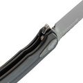 Рукоять имеет пистолетный изгиб с подпальцевой выемкой, благодаря чему инструмент удобно лежит в руке при любом хвате. Материалы рукояти — нержавеющая сталь и стеклотекстолит G10 — обеспечивают прочность, устойчивость к воздействию окружающей среды и простоту в обслуживании. Такая комбинация идеально подходит для рабочего ножа. Рукоять оснащена клипсой глубокой посадки, что позволяет удобно носить Balance в кармане.