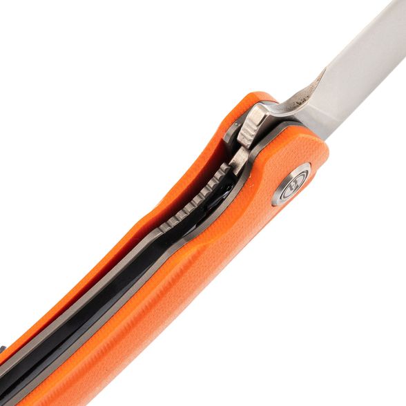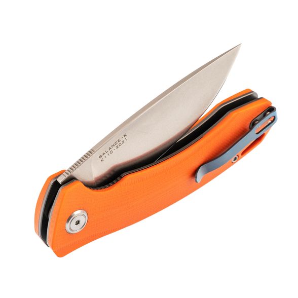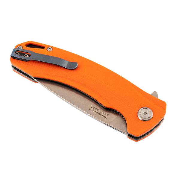 Складной нож Maxace Balance Orange, сталь K110, G10 - это чистый, эстетически привлекательный легкий складной нож, предназначенный для EDC. Он имеет лезвие типа "дроп-пойнт", которое отличается чрезвычайно плавным ходом благодаря двойному подшипниковому шарниру. Его обработанная рукоять из G-10 прочна, а карманная клипса из нержавеющей стали установлена заподлицо. Balance - это чрезвычайно изящный нож с превосходной сборкой. Клинок с сатинированной отделкой drop point из Bohler K110. Флиппер-открывалка с подшипниковым шарниром. Черные накладки рукояти из G-10. Надежный лайнер-лок. Фрезерованная титановая карманная клипса.